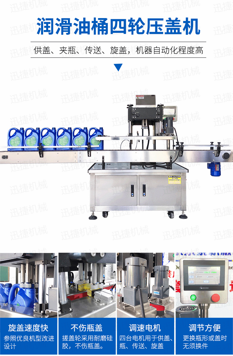 4.我們采用分系統動力控制及供料,提升了灌裝速度;以1L為例,4頭灌裝機每小時可達到1000桶/小時;灌裝在提升灌裝范圍的同時,對計量方式進行了改進,大大提高了灌裝精度,誤差1‰以內。5.灌裝頭獨有的雙重防滴漏,灌裝下料口設計精細,行程短,同時也提高了整條線的灌裝速度和灌裝精度,保證在正常灌裝過程中一滴油都不會滲漏。
